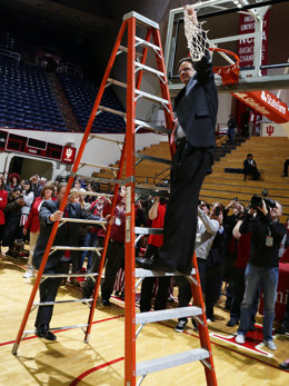 night in Bloomington, and tradition dictates that IU honors their seniors after the game and lets them talk to the crowd. It’s a nice way to celebrate it, but has to be tough if that comes after a loss. Well, the game was part of an ESPN double-header and didn’t even get over until after 11pm local time and didn’t go Indiana’s way. They lost to OSU 67-58. Yet, senior night must go on. But, that’s where I would draw the line. However, likely Tom Crean making a statement that they are back after some dark years, IU celebrated a title after the loss to the amazement of many who follow the sports. Nets were cut down, a trophy was presented and champion gear handed out. They know they have a game Sunday still, right? A win Sunday and they win the title outright. Are they already looking past that now that they’ve been crowned as champs? I understand wanting to celebrate with your fans, but I also think there is an appropriate time to do that – and it’s not after midnight, after a loss, with a big game still to play.