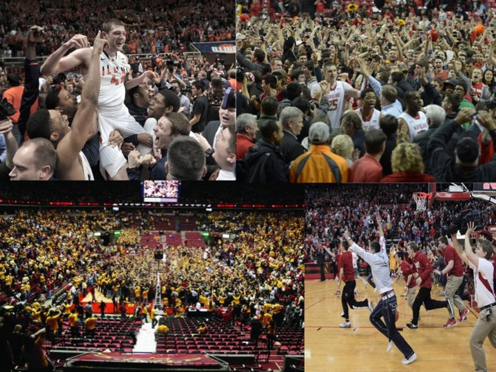Just as it has been storming this winter, students have been storming the basketball court all season. For anyone who knows me well, or follows me on twitter, they know that I have strong feelings about this. While many sports writers over the years have tried to develop their own rules for storming the court, there are no parameters for it (unless fines are involved). Some see it as a right of passage in college, others look at it as kids having fun, and some find it to be a safety issue. While the truth likely likes somewhere in the middle, there’s one thing for certain – storming the court has become an epidemic.