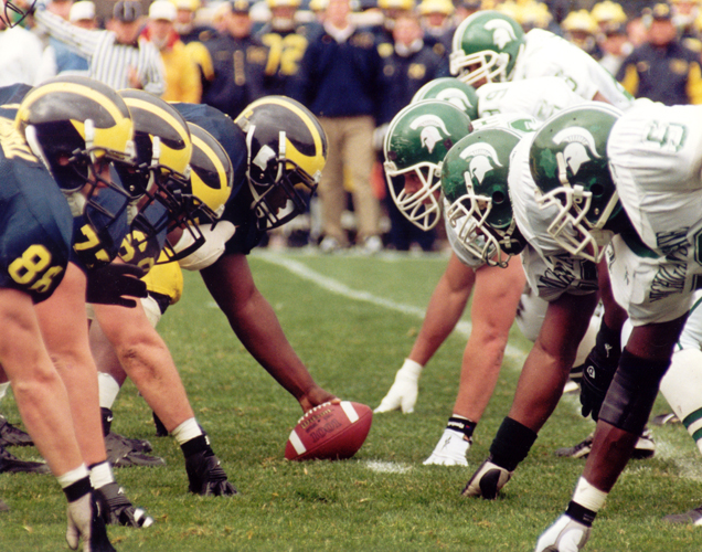 Located less than 70 miles from each other, the hatred between these in-state rivals runs deep – you’re either blue or green. This rivalry also goes beyond the realm of sports and encompasses all aspects of the 2 schools. Growing up as a Spartan just 10 miles from the University of Michigan campus, I’ve heard it all. From MSU always going to the “toilet bowl” in the early ‘90’s to all the misguided and offensive chants I’ve heard over the years (yes, we have stereotypes and sayings we have for their fan base too), there is no love lost between the two major schools in the mitten state. They’ve been conference foes since 1950 and Michigan leads the series overall 68–32–5. However, the Spartans lead U-M 4-2 in the last six meetings. Each fan base likes to make sure the other knows those numbers too. One side is said to be arrogant (pick your word) while the other has an inferiority complex. The criticism from each side is never-ending.