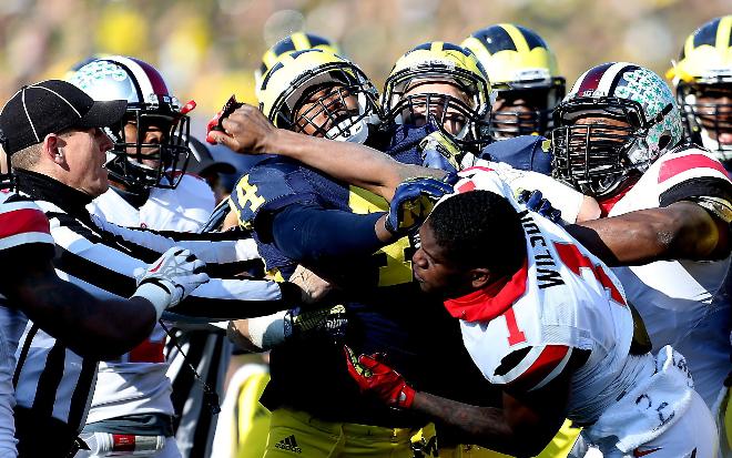 In the Midwest, a rivalry was renewed between Michigan and Ohio State. While the Wolverines were looking for a glimmer of hope in a rough season, the Buckeyes hoped to keep their national championship hopes alive. An on-field scuffle in the first half lead to
